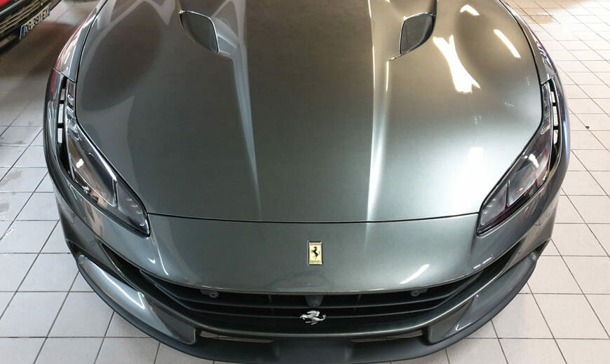pose d'un film de protection carrosserie auto PPF sur Lyon - Ferrari Portofino M Installation d'un film de protection carrosserie PPF sur le masque avant de cette magnifique Portofino M, suite…